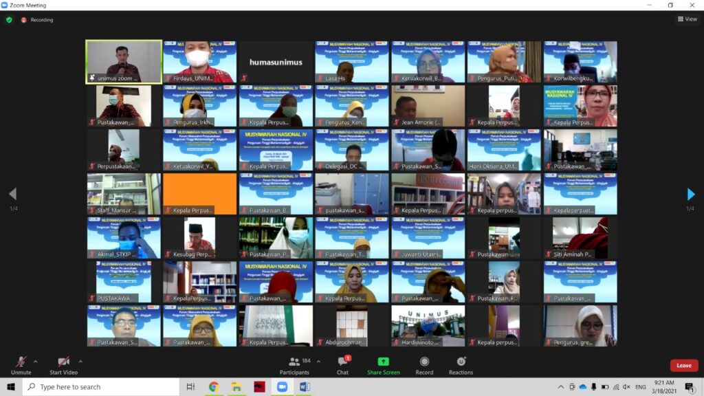 Kamis,18 Maret 2021 Bertempat di Kampus Universitas Muhammadiyah Semarang telah terselenggara Musyawarah Nasional IV FPPTMA secara daring. Universitas Muhammadiyah Semarang ditunjuk menjadi tuan rumah sekaligus penyelenggara MUNAS.