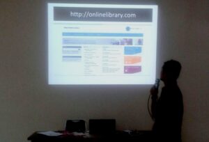 E-resources perpustakaan nasional dapat di akses di alamat http://e-resources.pnri.go.id, mahasiswa dan dosen unimus bisa mendaftarkan langsung ke PNRI atau juga menggunakan kode akses perpustakaan unimus sebagai anggota resmi PNRI. Di samping itu disampaikan pula bahwa perpustakaan unimus melanggan sumber pustaka dari online library yang berpusat di Singapura http://onlinelibrary.wiley.com/ panduan aksesnya disampaikan oleh Pustakawan Unimus Bapak M. Firdaus Charis Nursecha, S.Hum. Kegiatan ini di hadiri oleh dosen dan mahasiswa di lingkungan Unimus.
